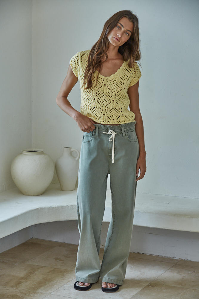 Kendra Crochet Cap Sleeve Top - Butter
