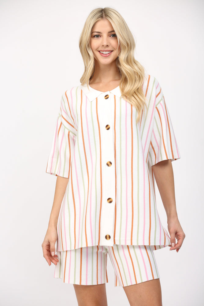 This is what happens when happy hour plans meet a golden hour glow. The Ocean Aura Knit Shorts are your new go-to for turning a casual boardwalk stroll into a chic event. Made from a luxe knit, these stretch shorts hold a perfect, flattering shape. Stripes add a sweet, feminine touch, while the elastic waist band ensures a comfortable fit. Pair with the Ocean Aura Top (sold separately) for a stunning set.